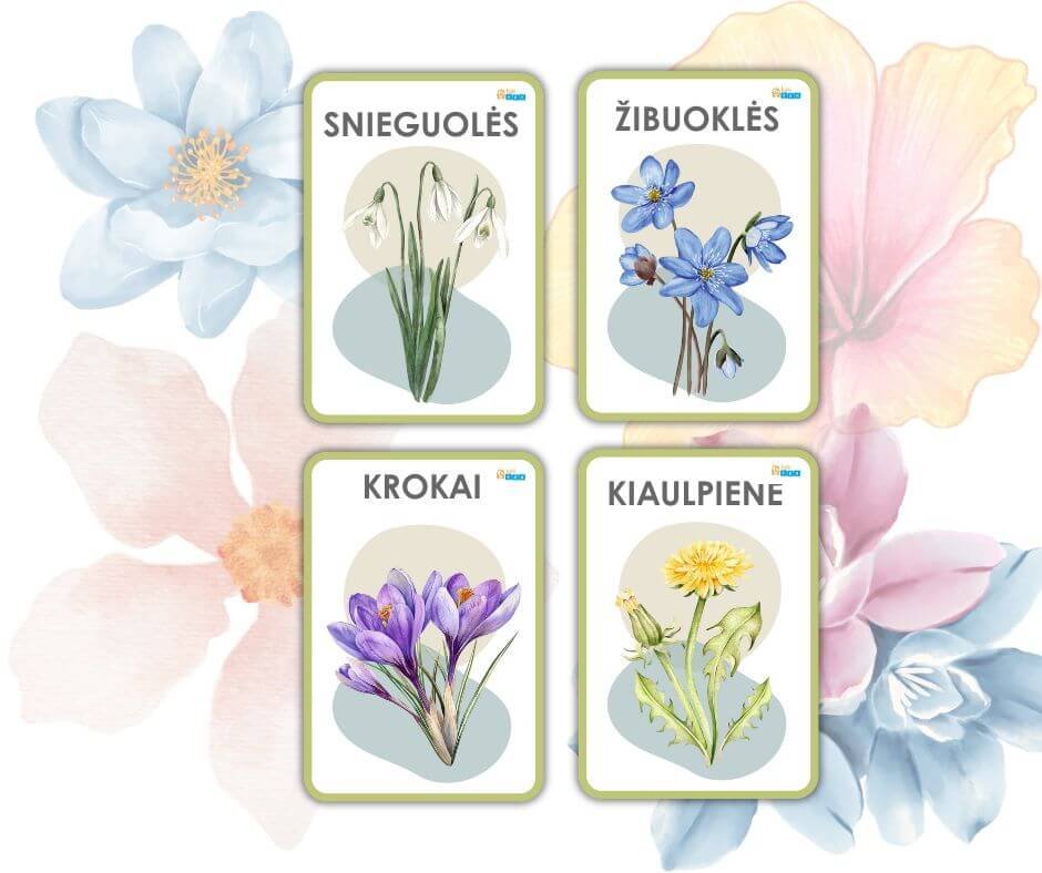 Šis rinkinys padės vaikams susipažinti su pirmosiomis pavasario gėlėmis, augančiomis Lietuvoje. Kortelėse pateikti aiškūs, ryškūs augalų piešiniai bei jų pavadinimai lietuvių kalba.